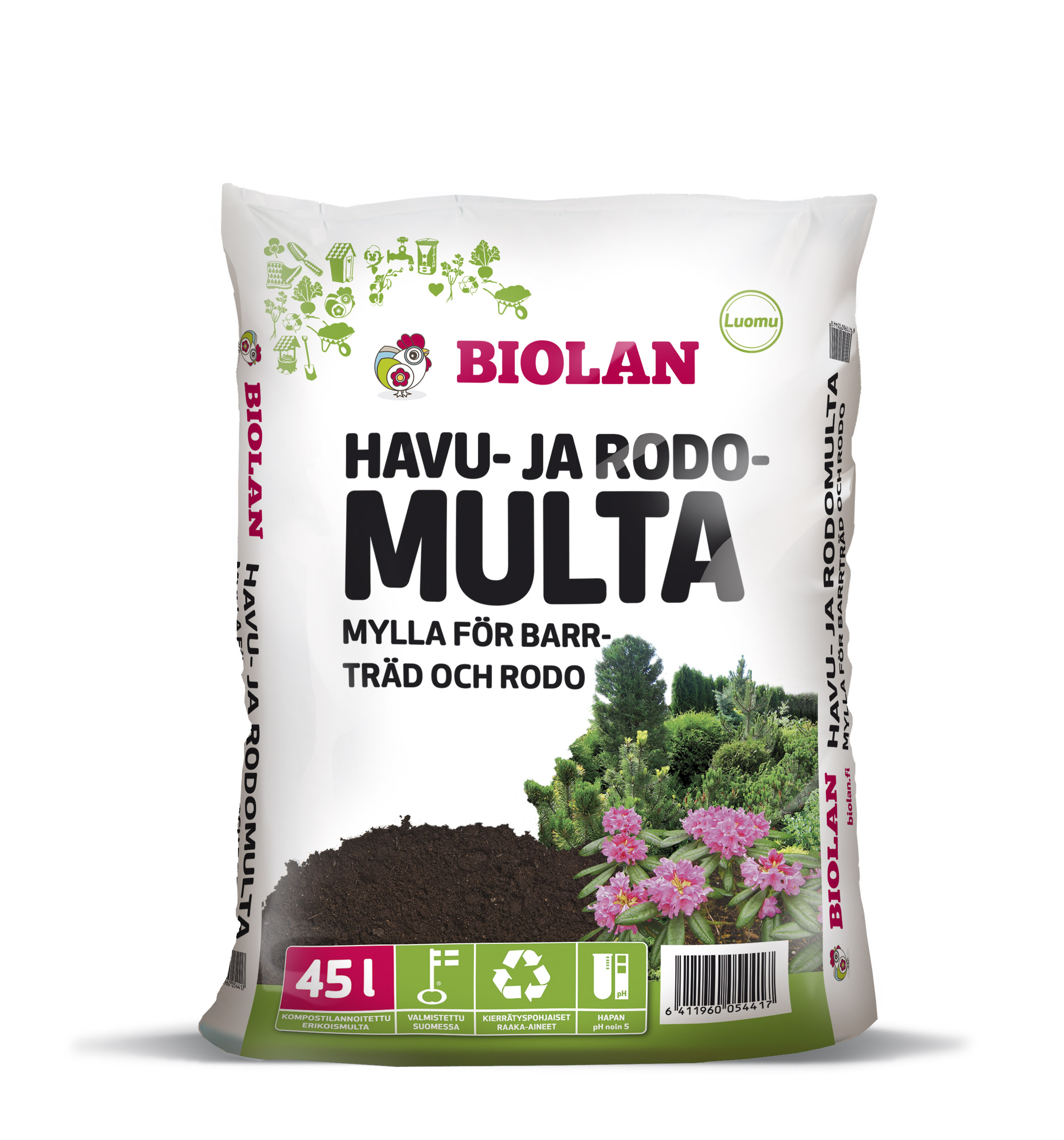 Biolan Havu- ja rodomulta on kompostilannoitettu erikoismulta hapanta kasvualustaa vaativille kasveille, kuten alppiruusuille, havukasveille ja pensasmustikalle. Multa soveltuu kasvualustaksi sellaisenaan. Havu- ja rodomulta soveltuu myös maanparannukseen kaikkialla puutarhassa, jos maan pH on liian korkea (emäksinen) ja viljellään hapahkoa kasvualustaa suosivia kasveja. Havu- ja rodomulta soveltuu myös luomukasvatukseen.