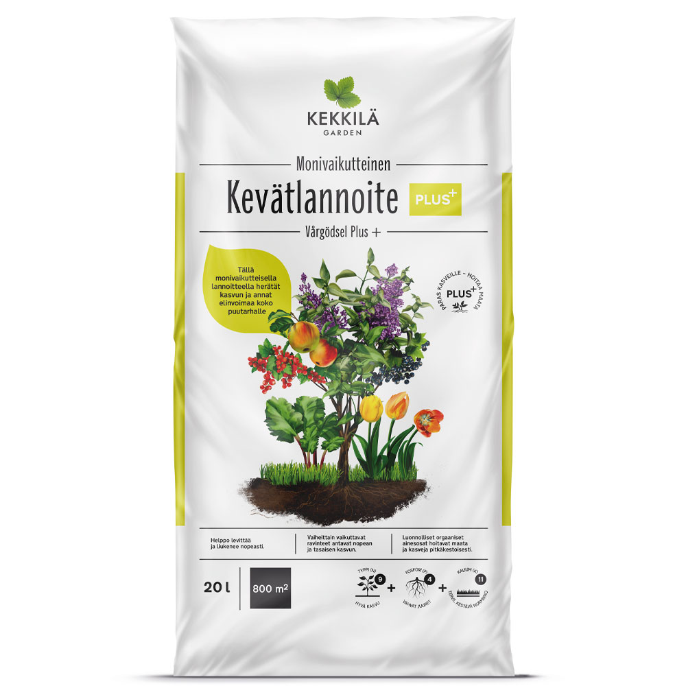 Kekkilä Kevätlannoite PLUS+ on monivaikutteinen puutarhan yleislannoite. Se käynnistää keväisen kasvun sekä antaa kestävyyttä ja elinvoimaa kaikille puutarhan kasveille. Kevätlannoite PLUS+... Lue lisää