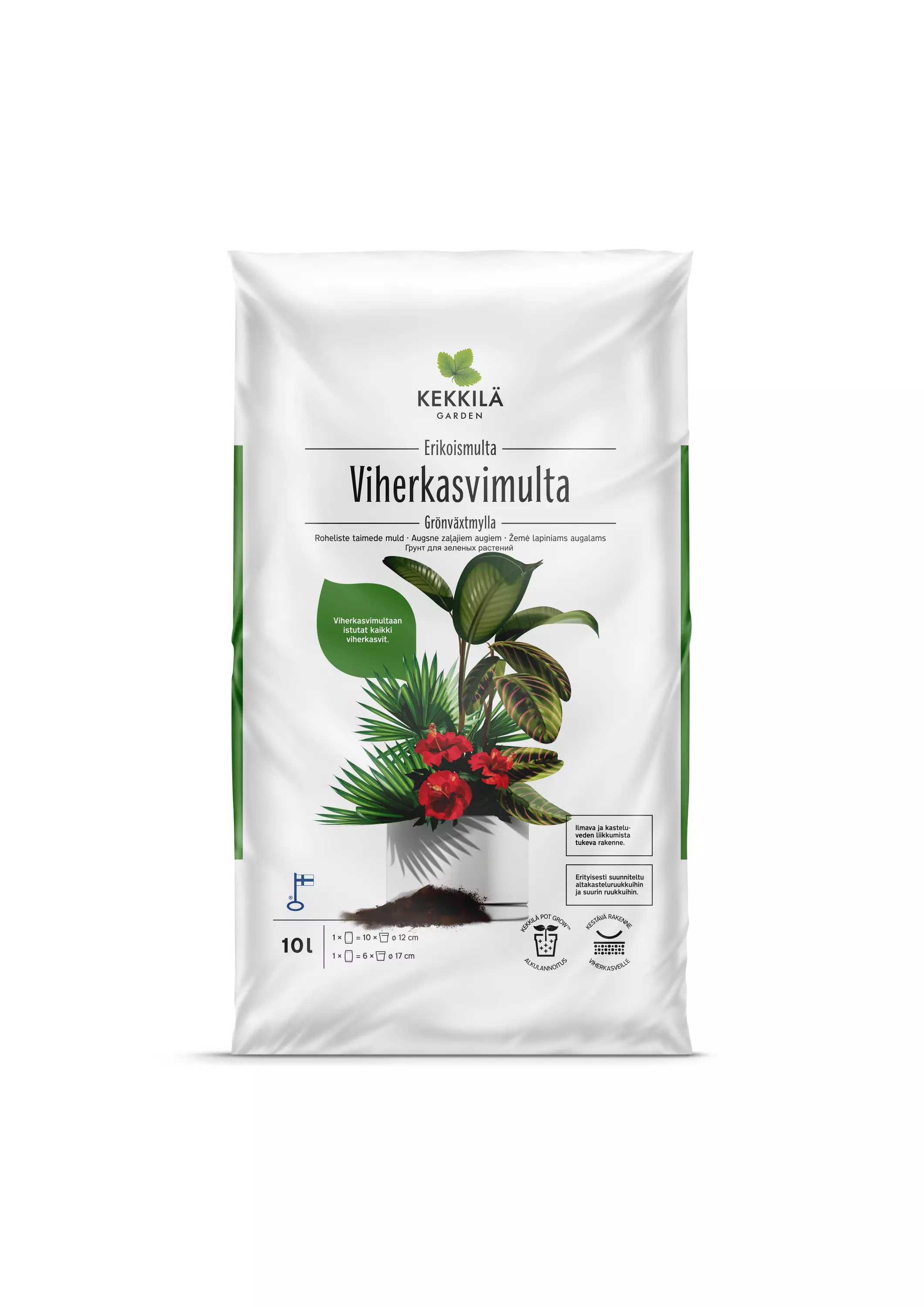 Kekkilä Viherkasvimulta on erikoismulta, joka on tarkoitettu kaikille viherkasveille, erityisesti altakasteluruukkuihin, isoille viherkasveille ja monivuotisille terassikasveille. Viherkasvimullan raaka-aineet on valittu siten, että multa pysyy ilmavana ja vesi ja ravinteet leviävät tasaisesti koko multakerrokseen. Ihanteellisella hiekkamäärällä on vähennetty ylikastelun riskiä. Kekkilä Viherkasvimultaan istutettujen kasvien hoito on helppoa, sillä kasteluvesi imeytyy multaan välittömästi. Ilmava rakenne auttaa kasveja juurtumaan ja kasvamaan terveinä ja elinvoimaisina.