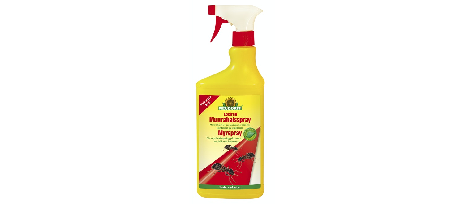 Loxiran Muurahaisspray on muurahaisten torjuntaan tarkoitettu käyttövalmis luonnonmukainen spray sisätiloihin, keittiöihin, kivetyksille, rakennusten välittömään läheisyyteen ja terasseille. Spraypullo ei sisällä ponnekaasua. Helppo sumuttaa myös hankaliin paikkoihin. Nopea ja tehokas vaikutus perustuu rapsiöljyn ja krysanteemin kukinnosta saatavaan luonnonpyretriinin yhdistelmään.