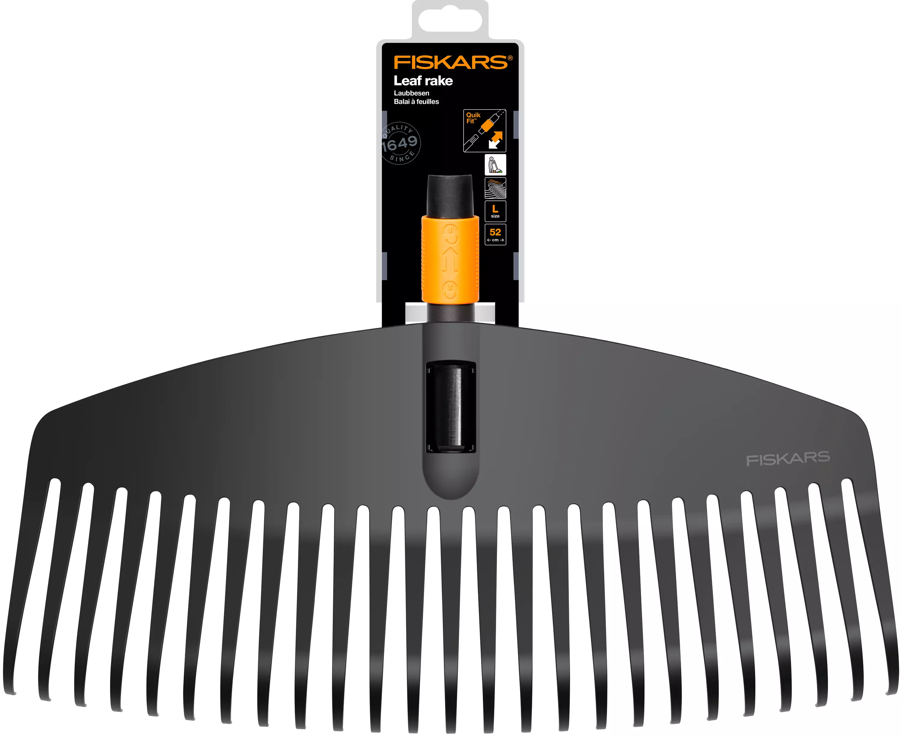 Leveä työkalu lehtien ja ruohonleikkuujätteen haravointiin. Lapa on valmistettu kestävästä, mutta kevyestä ja joustavasta materiaalista, joten vetoliike vaatii vähemmän voimaa. Piikit PBT- muovia. Käytetään Fiskars QuikFit™ varsien kanssa.