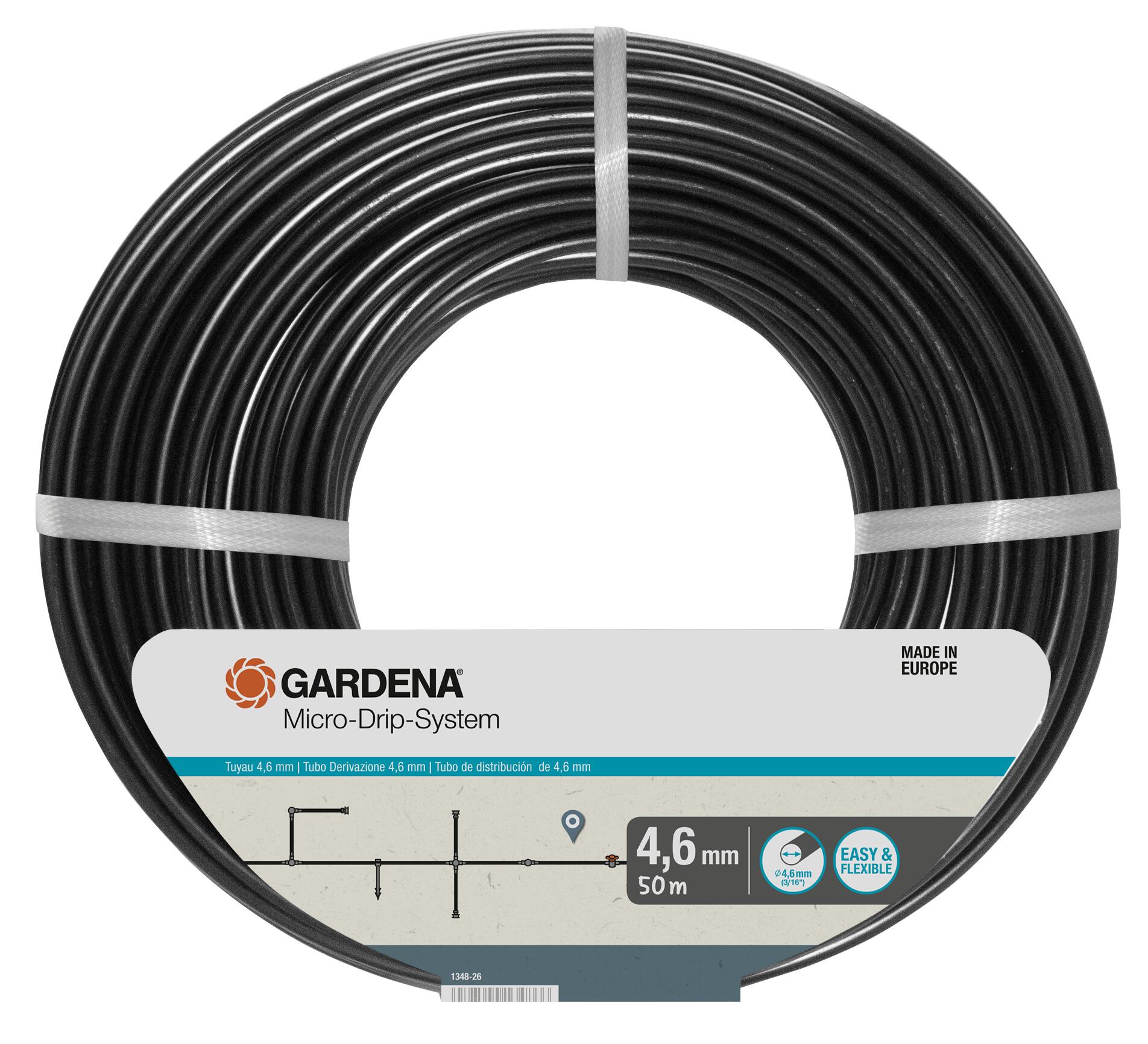 GARDENA 4,6 mm (3/16") haaroitusputki on pituudeltaan 50 m, ja se sopii erinomaisesti Micro-Drip-järjestelmän asentamiseen ja jatkamiseen. Helposti asennettava haaroitusputki johtaa luotettavasti veden siihen kiinnitettyihin suihku- ja päätytippusuuttimiin, ja siten suoraan kasveillesi. Voit yksilöllisesti haaroittaa ja jatkaa putkea erikseen saatavien 4,6 mm:n liitinten avulla, jotka edustavat ainutlaatuista Quick & Easy -liitostekniikkaa. Korkealaatuiset materiaalit takaavat haaroitusputken pitkän käyttöiän. Putki on myös UV-suojattu ja valoa läpäisemätön.