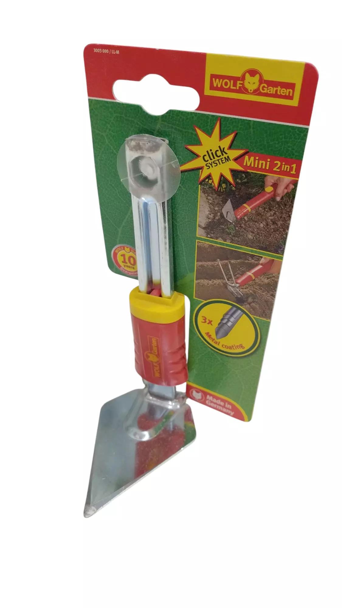 Väline nuorten kasvien ympärille maan möyhentämiseen. Kuokka toisella puolella viljelemiseen.