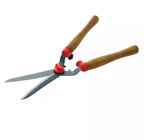 Mukavan tuntuiset puiset kahvat ja iskunvaimennin tekee pensaiden siistimisestä helppoa. Pitkät, likaa hylkivät terät ovat muotoiltu kaareviksi. Saksissa on myös oksaleikkuri pienille oksille.
