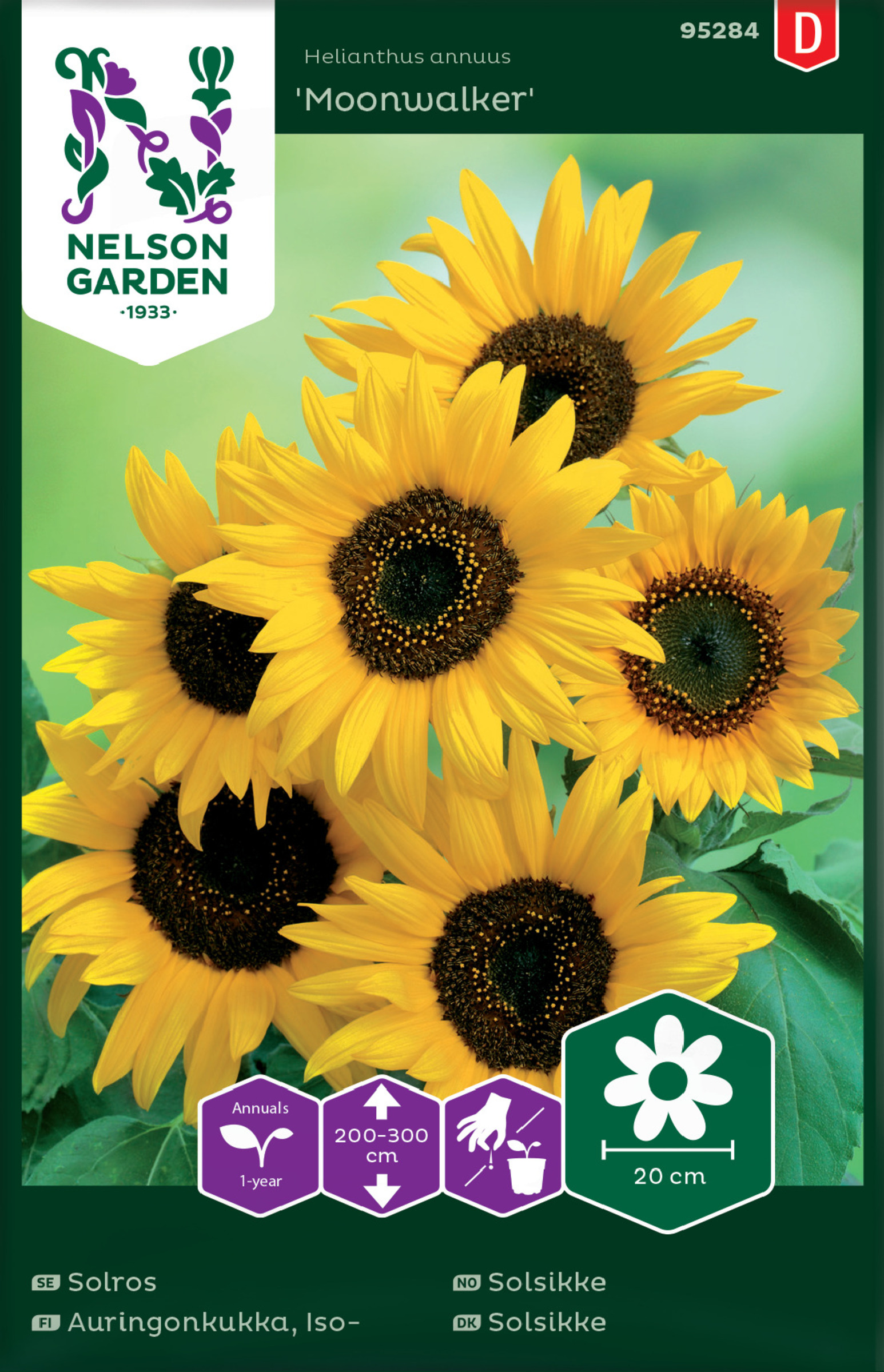 Isoauringonkukka 'Moonwalker' on yksivuotinen koristekasvi. Annossiemenpussi. Tunnettu ja helppohoitoinen kasvi. Taimet haaroittuvat puskamaisesti, tekee 6-10 kpl voimakkaan sitruunankeltaisia kukkia... Lue lisää