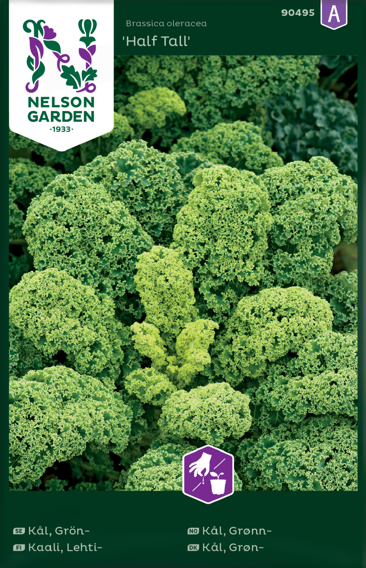 Lehtikaali 'Half Tall' on yksivuotinen hyötykasvi. Annossiemenpussi.
