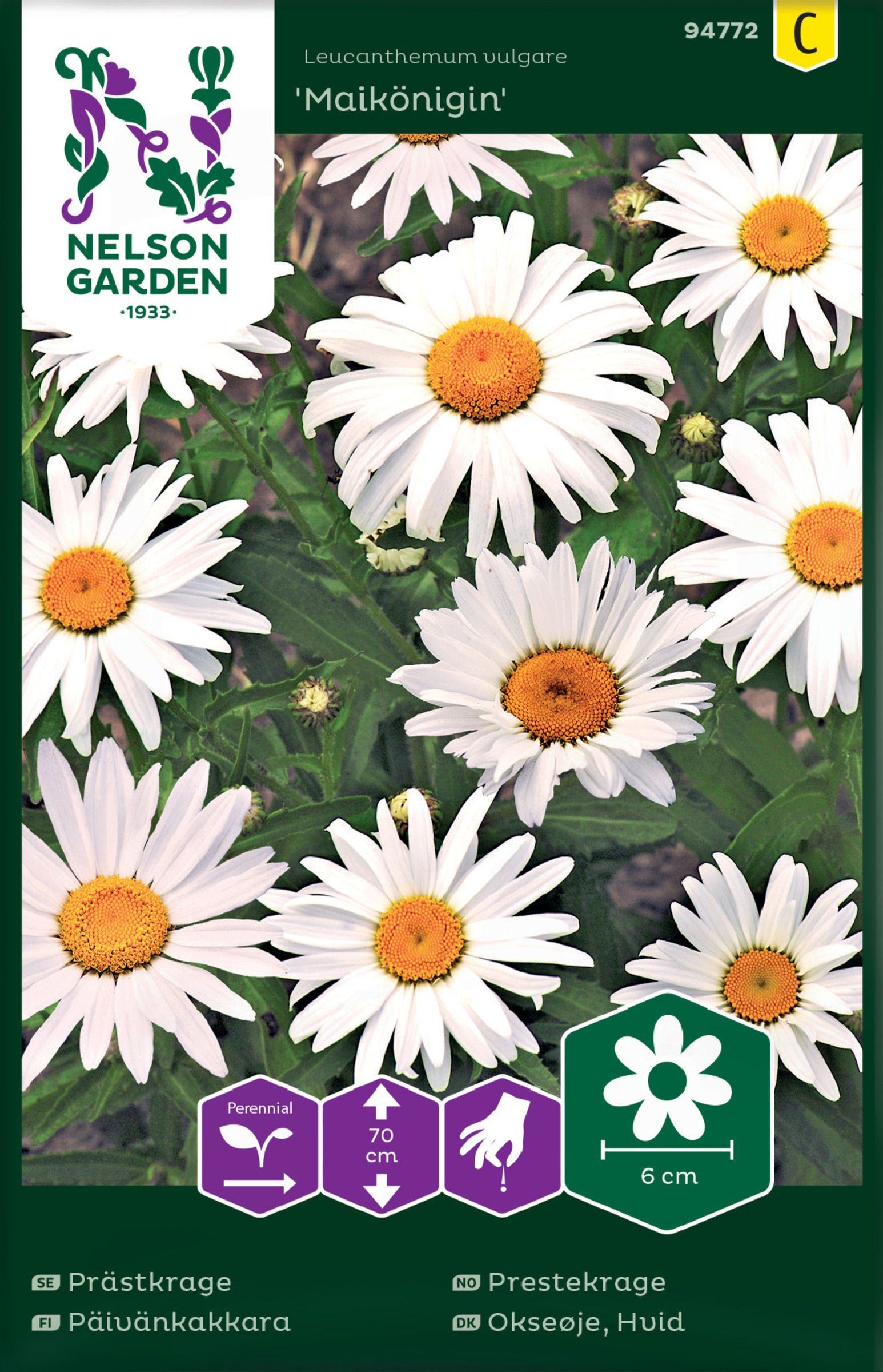 Päivänkakkara 'Maikönigin' on monivuotinen koristekasvi. Annossiemenpussi. Tunnettu ja perinteinen kesäkukka. Kaunis kukkapenkissä ja ryhmäistutuksissa, ehdoton kukka kesän kukkakimpuihin.... Lue lisää