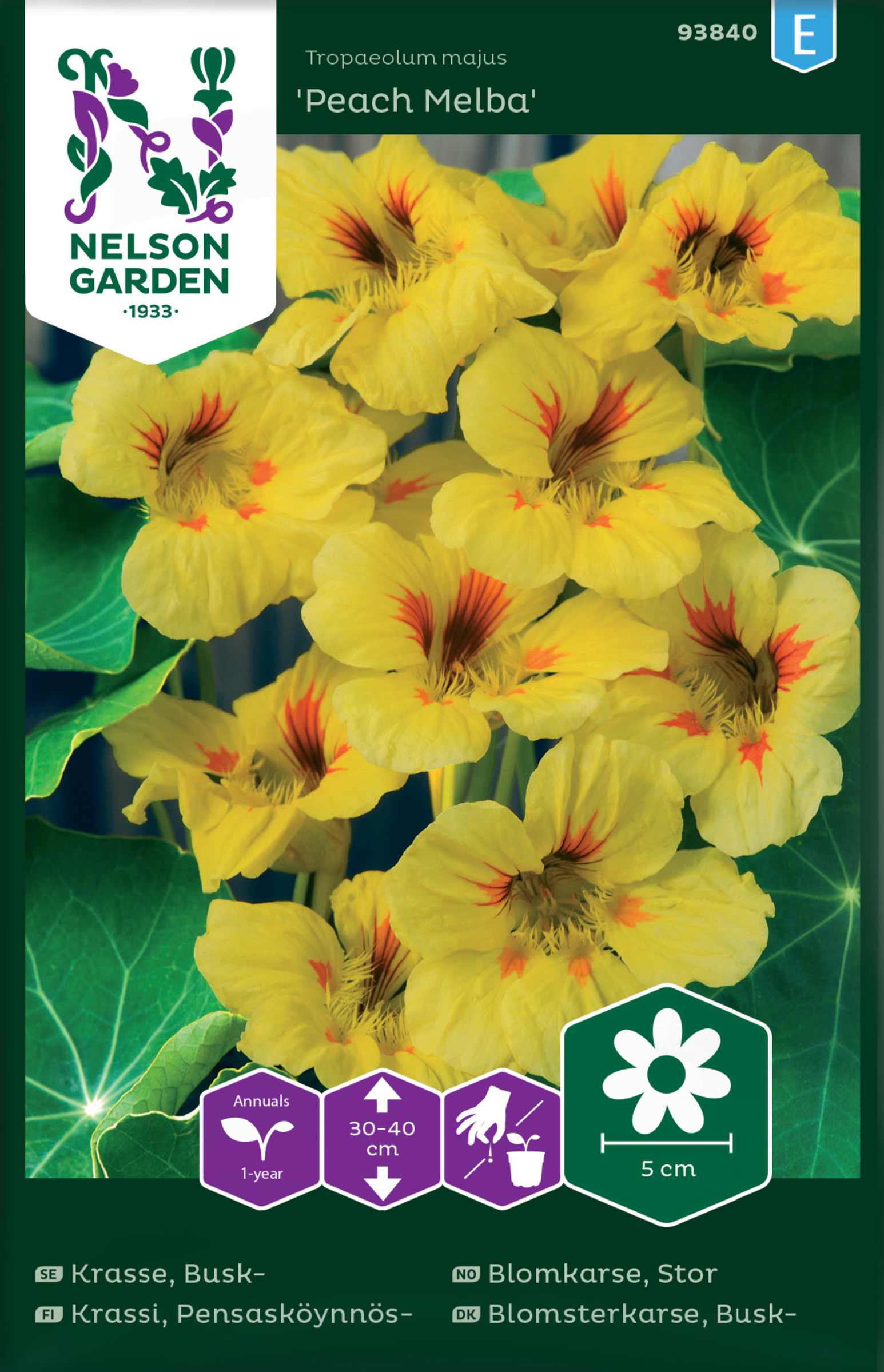 Pensasköynnöskrassi 'Peach Melba' on yksivuotinen koristekasvi. Annossiemenpussi. Pienikokoiset taimet sopivat erittäin hyvin reunuskasviksi, parvekelaatikkoon, kukkapenkkiin ja kivikkopuutarhaan.... Lue lisää