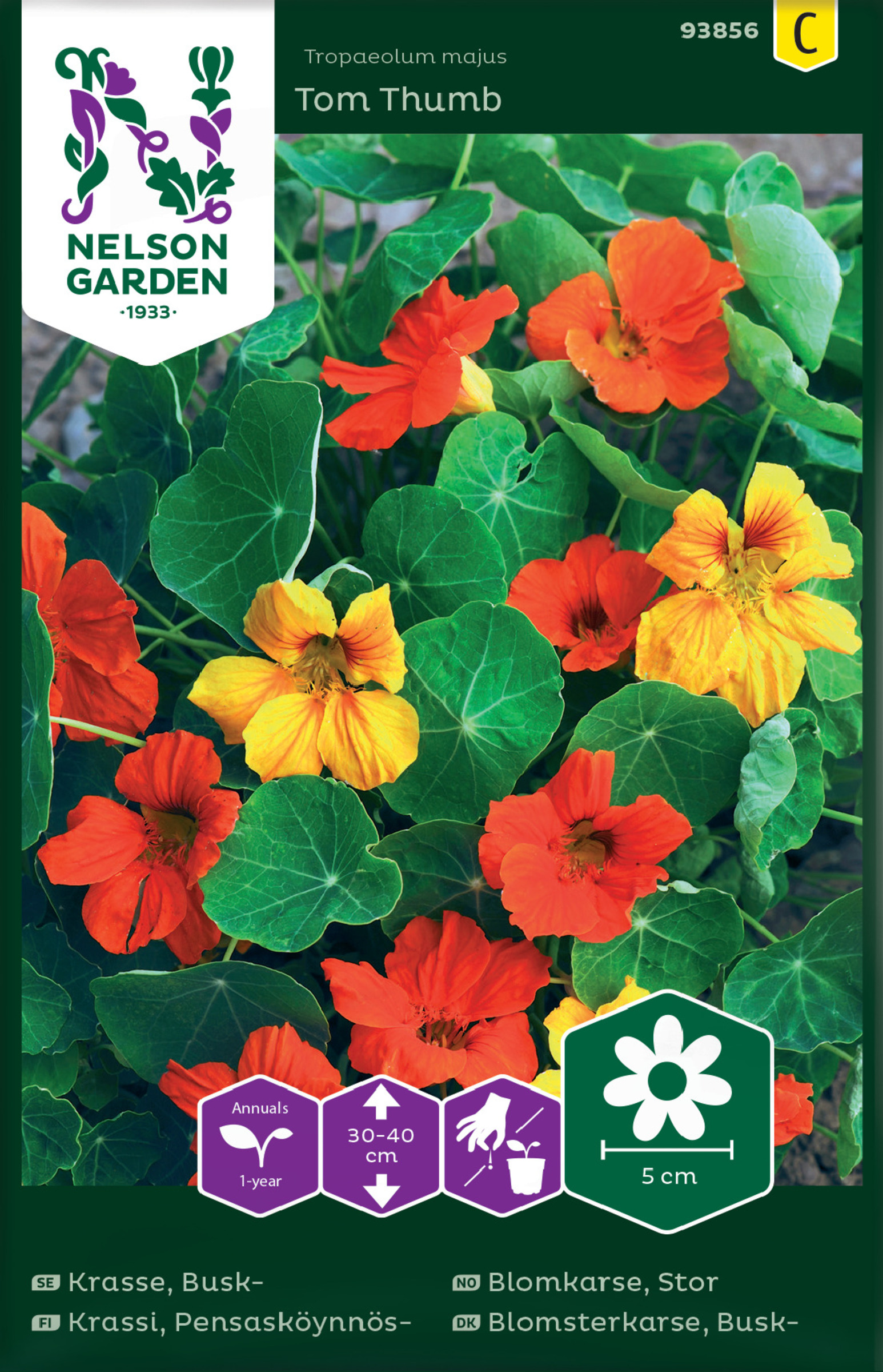 Pensasköynnöskrassi 'Tom Thumb' on yksivuotinen koristekasvi. Annossiemenpussi. Värikäs pensaskrassi, joka kukkii keltaisen, oranssin ja punaisen sävyissä. Sopii reunakasviksi kukkapenkkiin tai... Lue lisää