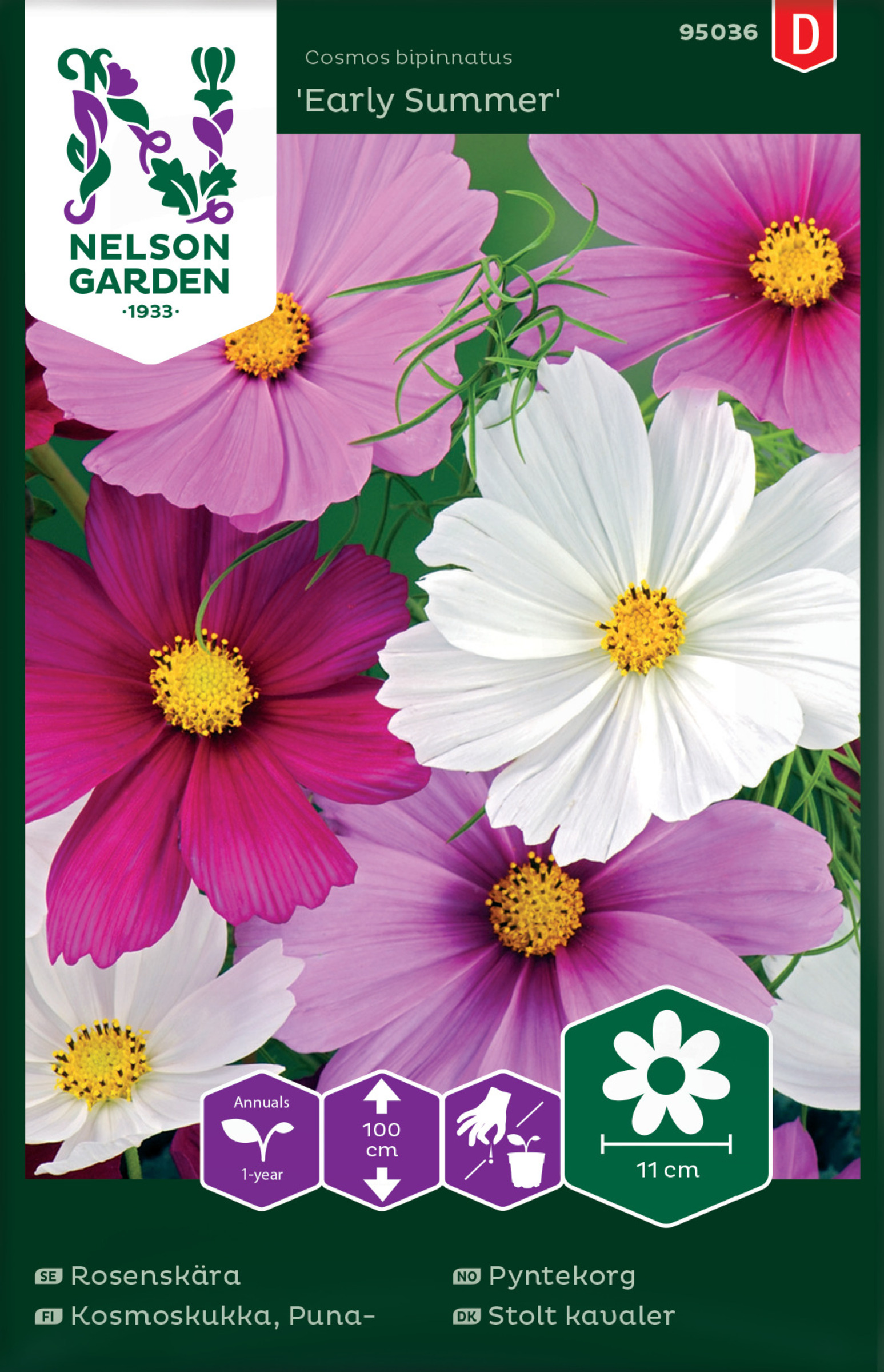 Punakosmoskukka 'Early Summer' on yksivuotinen koristekasvi. Annossiemenpussi. Upea kesäkukka kukkapenkin yhteisistutuksiin sekä myös leikkokukaksi, kestää kauan maljakossa. Värisekoitus... Lue lisää