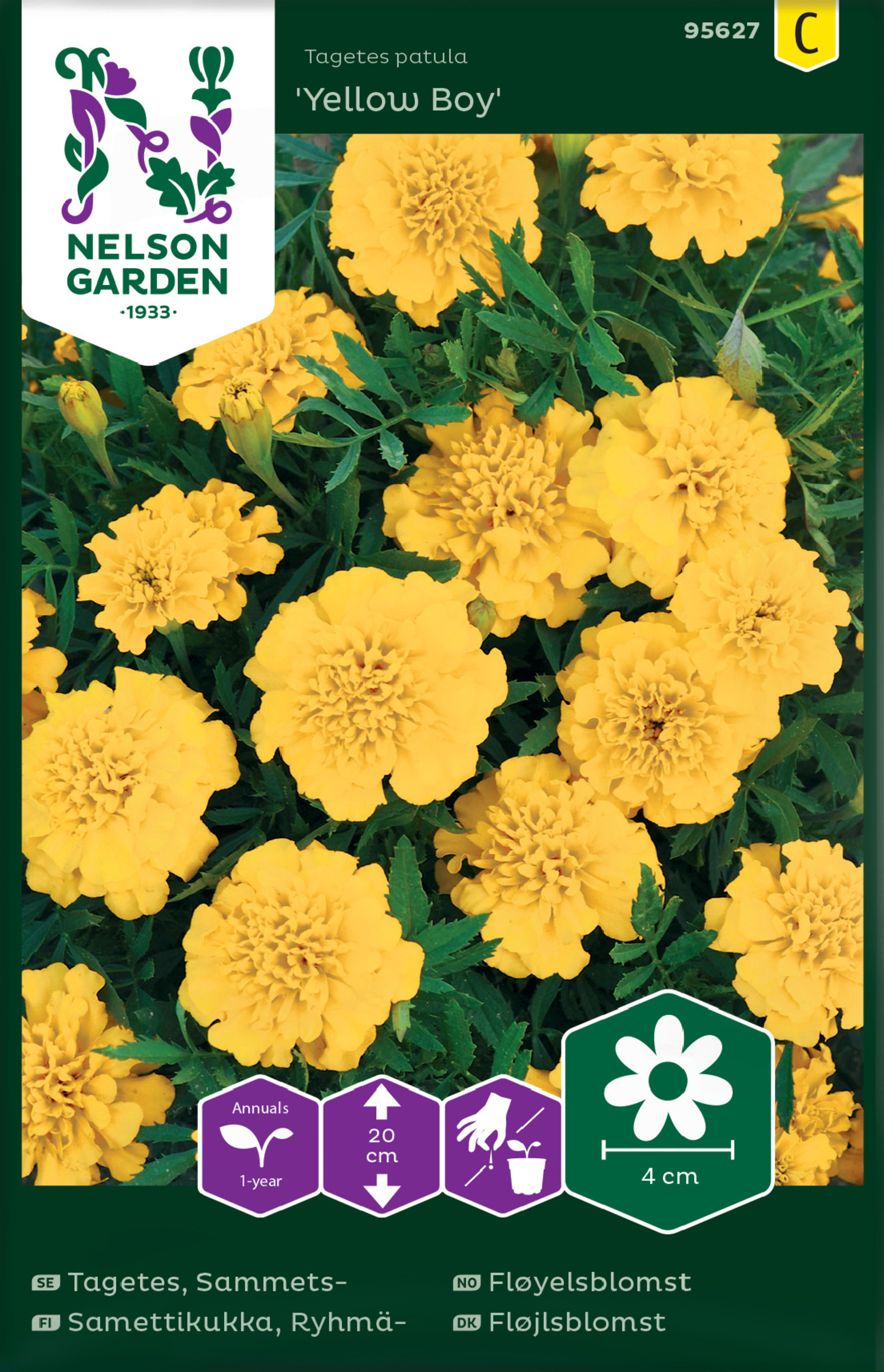Ryhmäsamettikukka 'Yellow Boy' on yksivuotinen koristekasvi. Annossiemenpussi. Kiitollinen ja helppohoitoinen. Matala lajike, jonka sitruunankeltaiset, täyteläiset kukat ovat n. 4 cm... Lue lisää