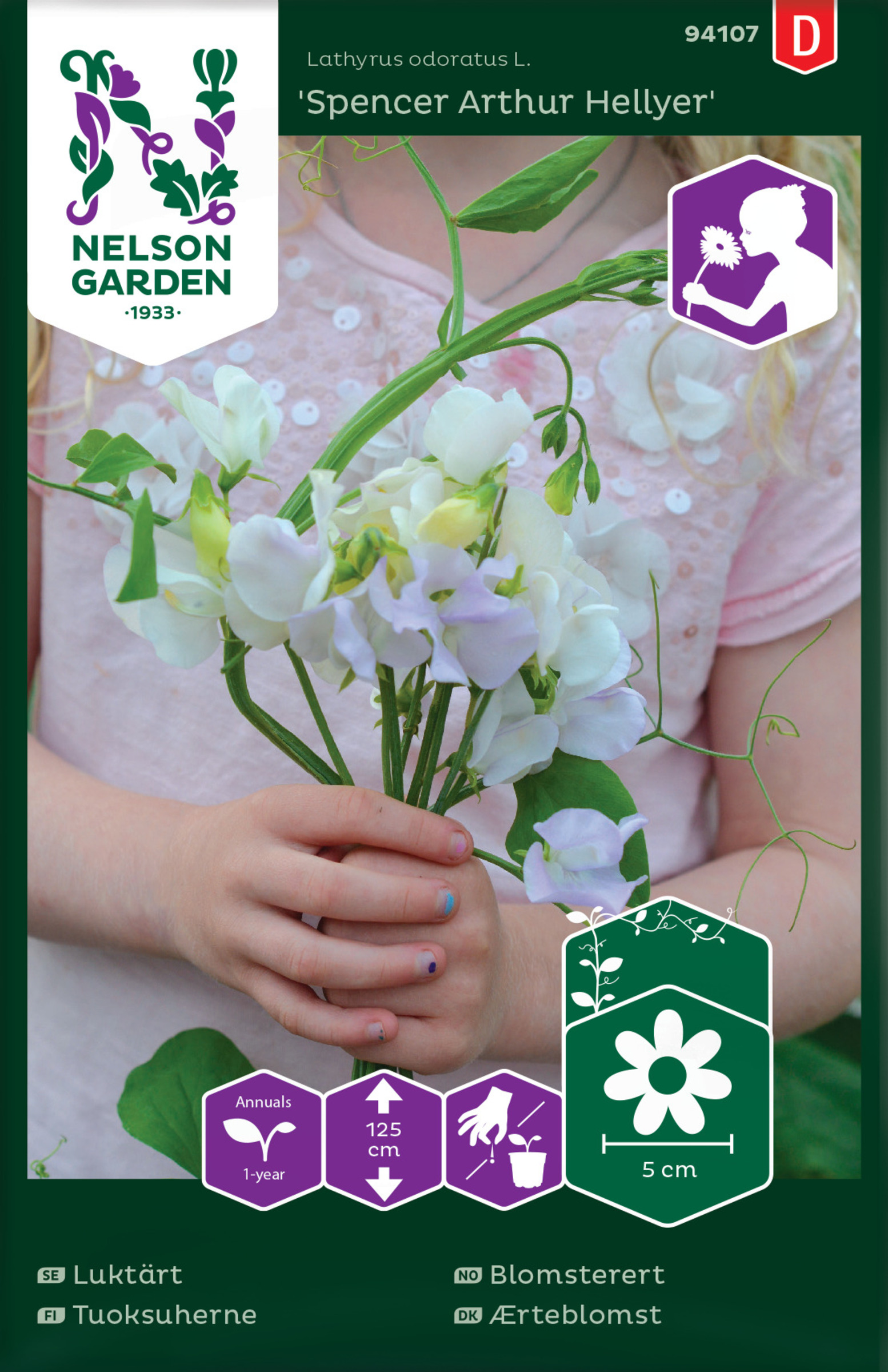 Tuoksuherne 'Spencer Arthur Hellyer' on yksivuotinen koristekasvi. Annossiemenpussi. Tuoksuherne, jonka vaalean liiloilla kiharaisilla kukilla on voimakkaat varret ja ihana tuoksu. Sopii ruukkuun ja... Lue lisää