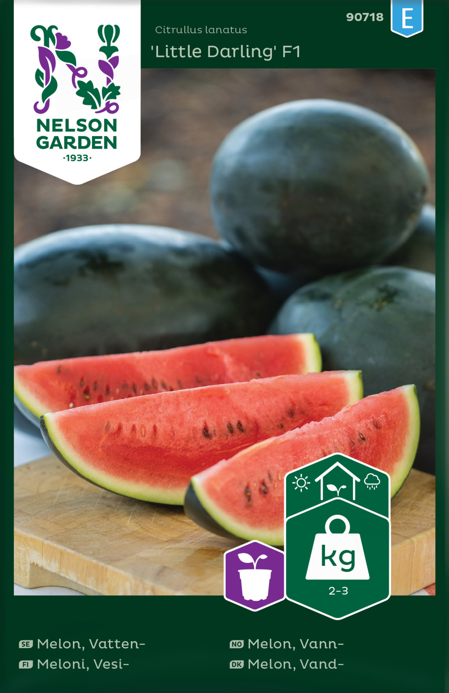 Herkullinen ja todella varhainen vesimelonilajike, jonka hedelmäliha on punainen ja kuori vihreä. Hedelmä kasvaa noin 2-3 kg painoiseksi. Läheistä sukua tavalliselle melonille, mutta lehdet ovat liuskamaisemmat eivätkä niin rehevät. Ei kestä kuivuutta.